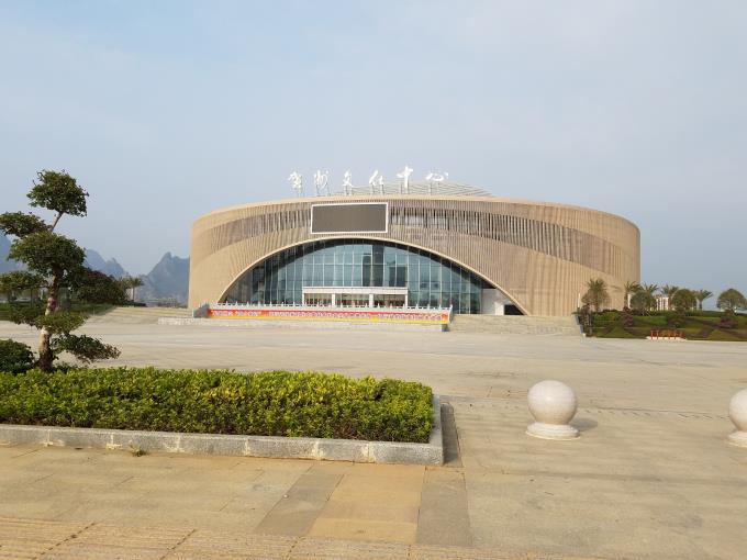 賀州市文化中心建設(shè)項目位于城東新區(qū)太白東路旁,整個建筑形體呈正圓形。項目開工時間為2012年2月3日,項目計劃總投資31300萬元,設(shè)計高度23.8m,總建筑面積33621㎡,占地117.7畝。建設(shè)內(nèi)容為局部地下二層及地上五層建筑,內(nèi)含1355個座位大劇院,影院、音樂廳、學(xué)術(shù)報告廳、會議室等8個功能廳,以及公共服務(wù)、車庫用房,室外臺座,290個車位生態(tài)停車場及綠化工程等。