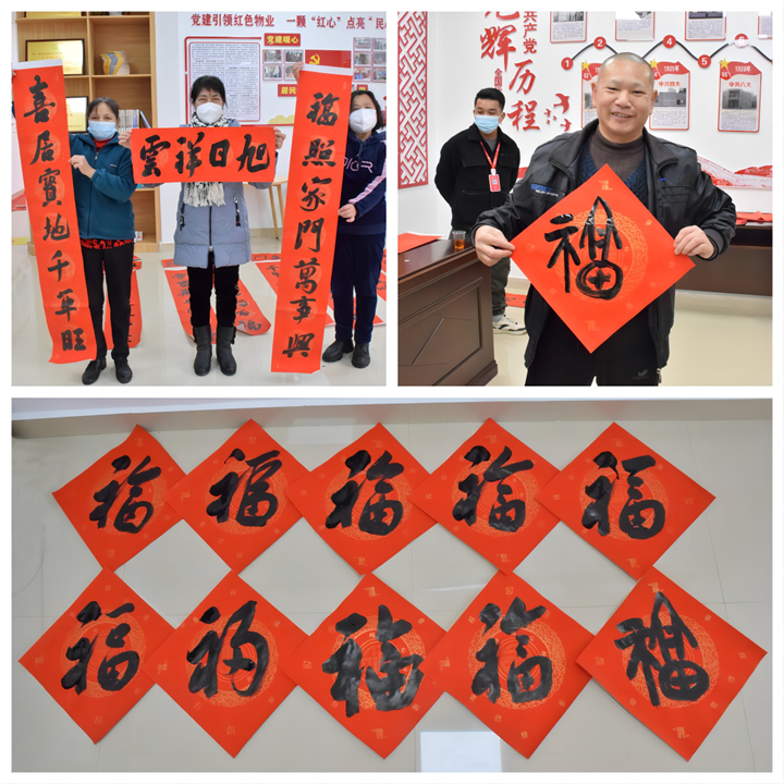 春節(jié)將至,為豐富小區(qū)業(yè)主文化生活,營造歡樂祥和的節(jié)日氛圍,1月16日上午,運營公司黨支部在賀州市城東新區(qū)公租房紅色物業(yè)示范點開展“紅色物業(yè)送春聯(lián) 墨香四溢暖人心”活動。活動邀請了多名市文聯(lián)、廣西書法家協(xié)會會員等優(yōu)秀書法家走進小區(qū),將紅紅火火和美好祝福送給廣大業(yè)主和群眾,用實際行動營造和諧、溫馨的新年氛圍。