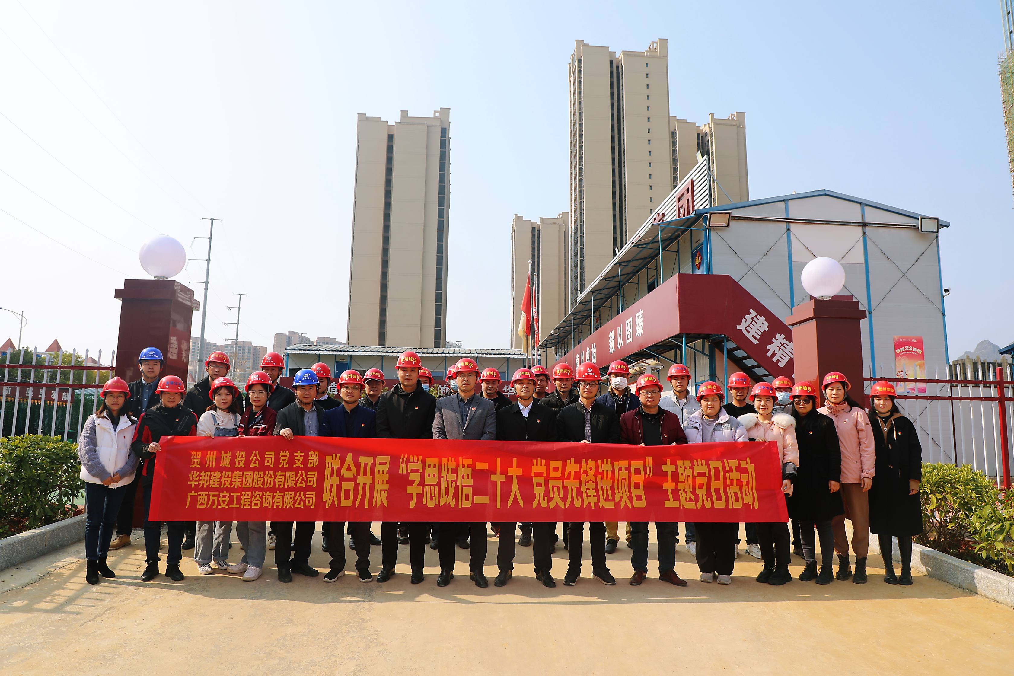 城投公司黨支部全體黨員、賀州市“三館一中心”項目各參建單位相關(guān)負(fù)責(zé)人及黨員代表30余人參加活動。